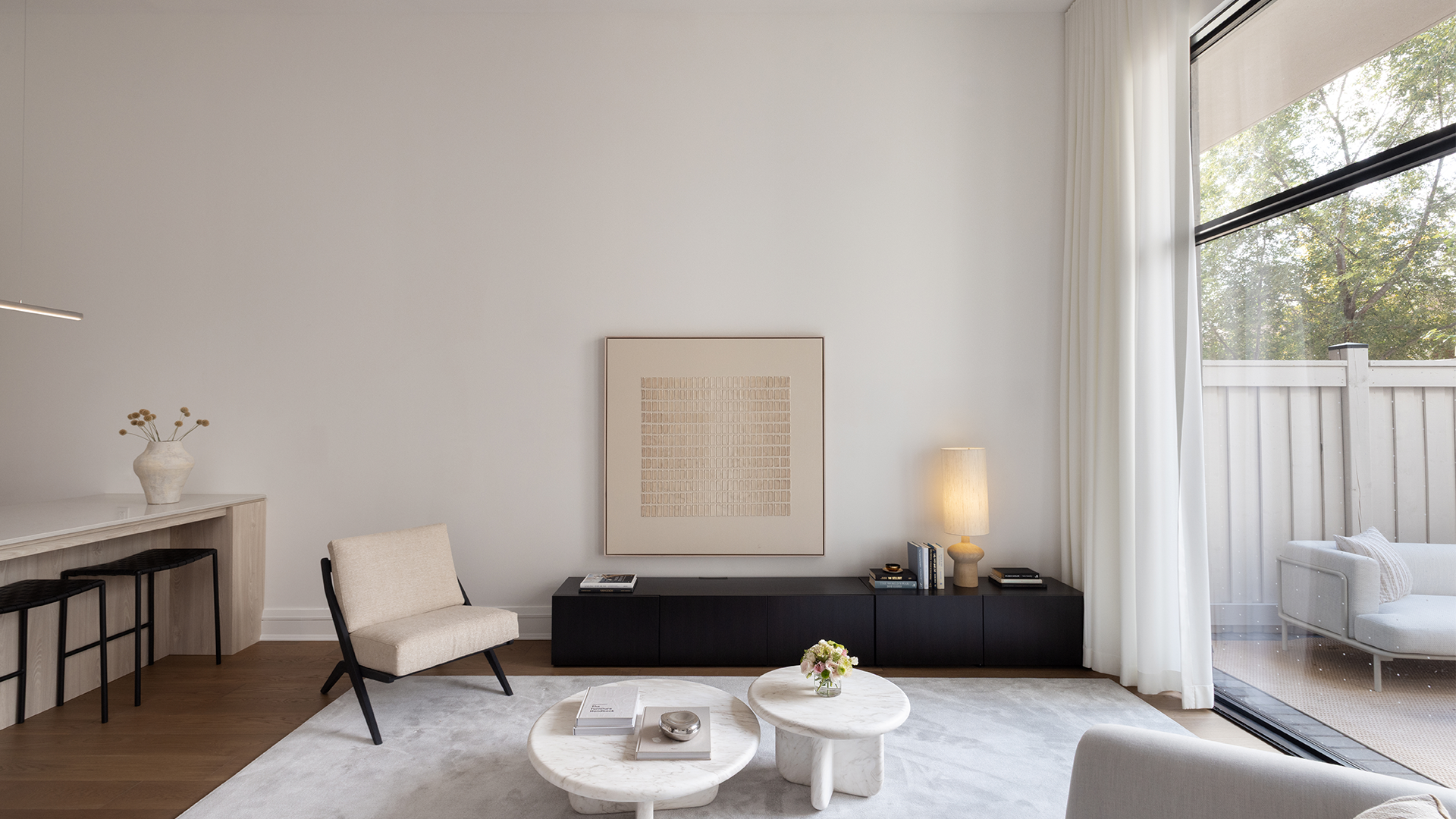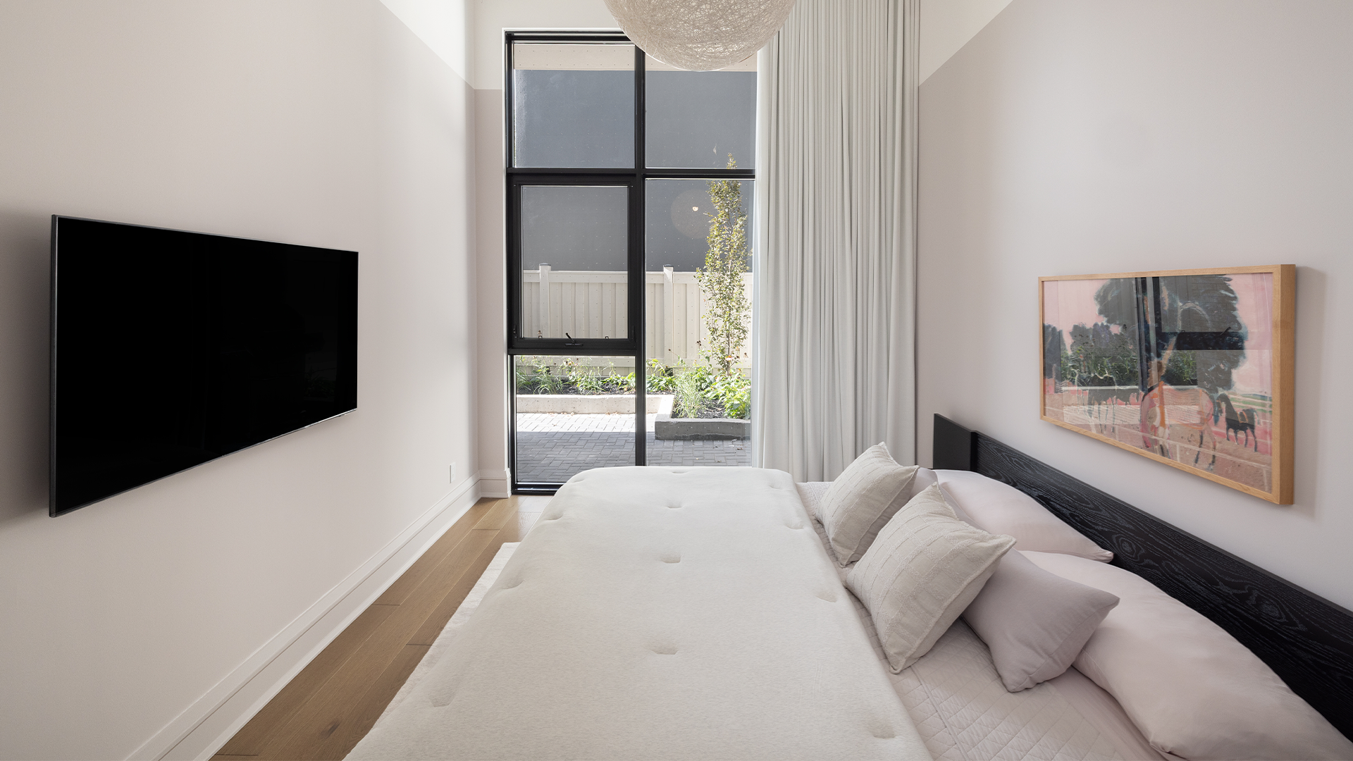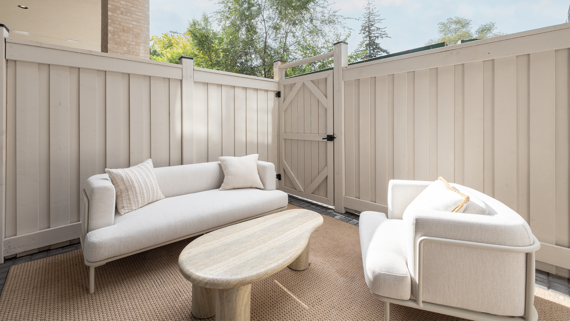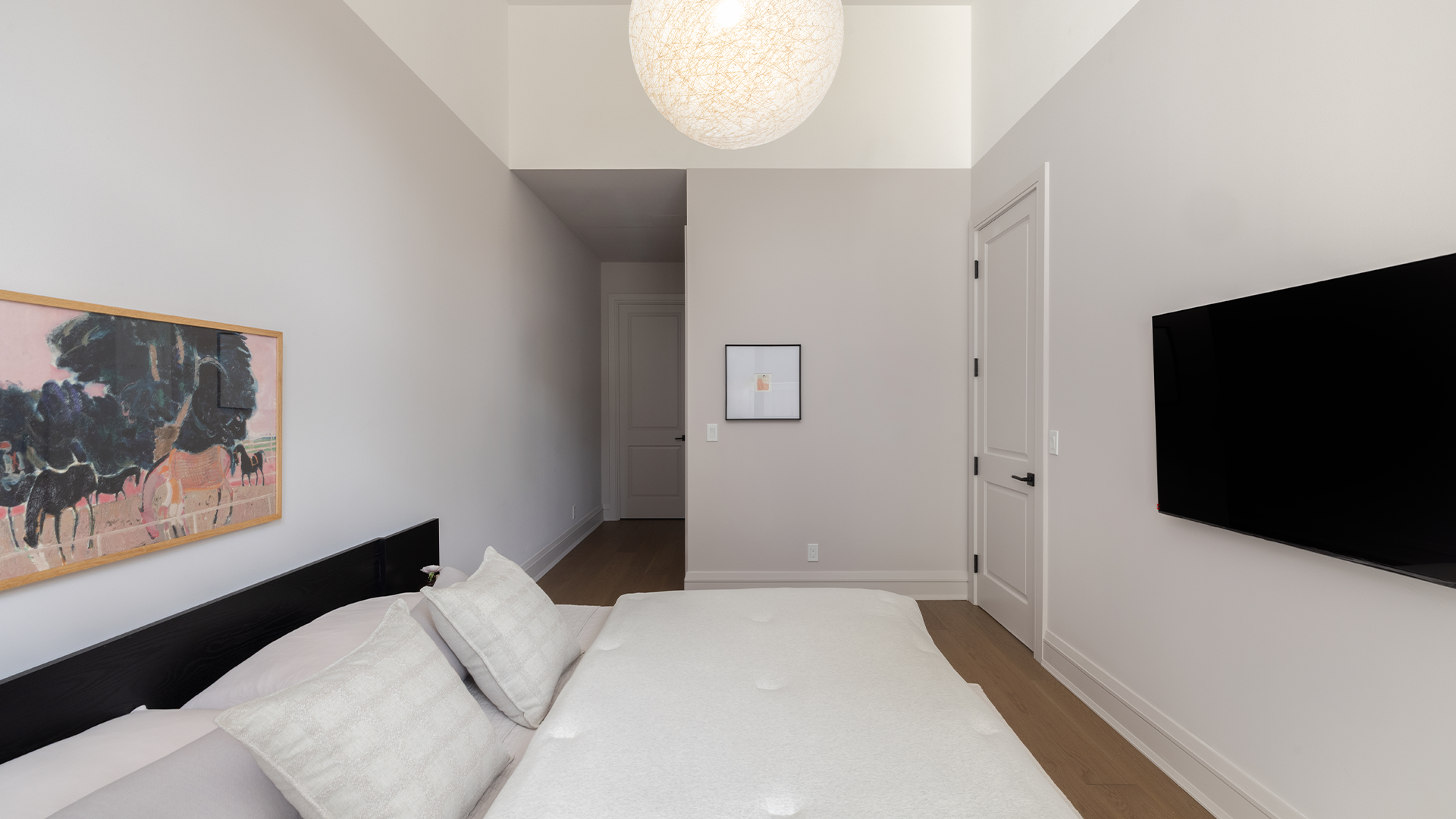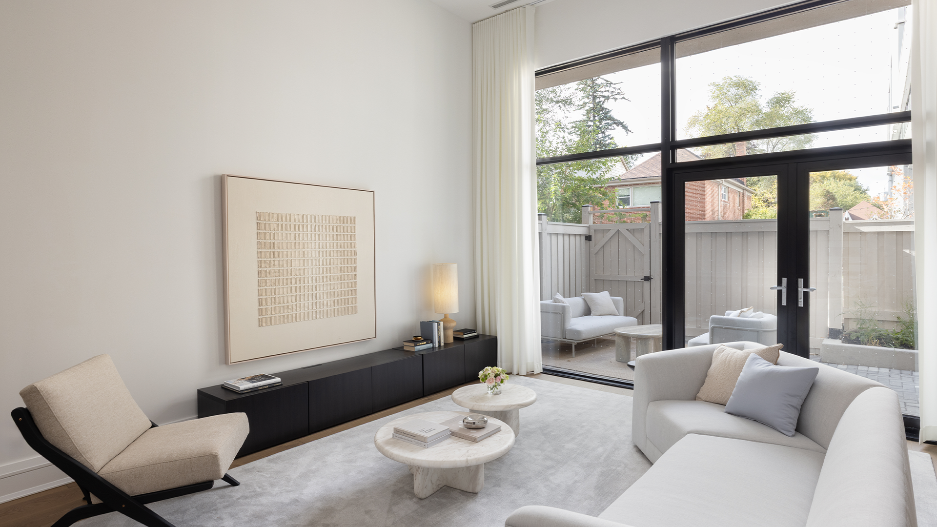 Upon stepping through the lobby doors, of The Rhodes, you’ll feel like this is a condo-building like no other. Opening the doors to the expansive one-bedroom plus den condo, only confirms your suspicions. It’s truly a one-of-a-kind gem in a boutique building nestled between midtown Toronto’s Forest Hill and Cedarvale neighbourhoods. Stepping outside you’ll find an outdoor retreat – like an entertaining patio with a natural gas BBQ and a flower garden. Inside you’ll find soaring 12-foot ceilings, recessed lighting, and 7-inch engineered wood floors set an elegant tone underfoot. The custom-designed kitchen features high-end appliances, quartz countertops, and an oversized island for five. The open-concept layout flows seamlessly into a bright living and dining area with bespoke built-ins, perfect for entertaining or working from home. Residents enjoy five-star amenities including a state-of-the-art fitness studio, pet spa, and rooftop terrace. This condo blends serene luxury with unmatched urban convenience.