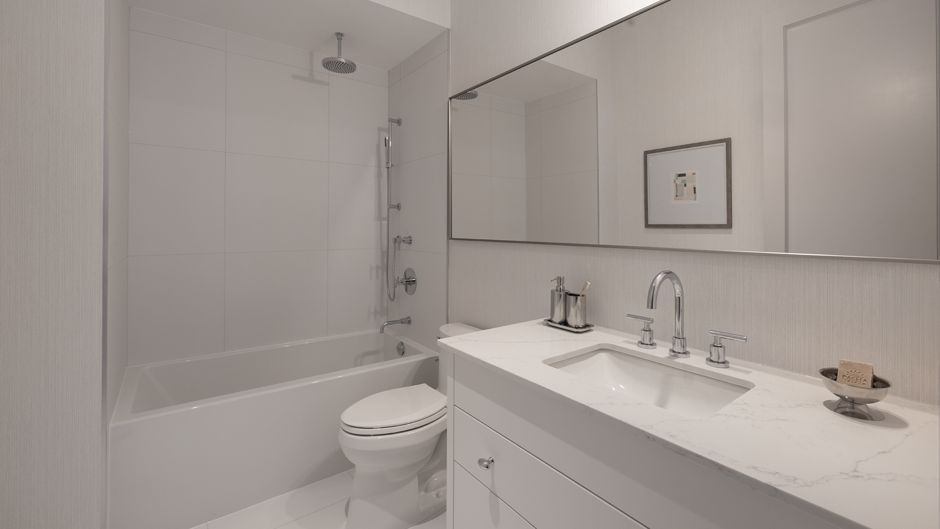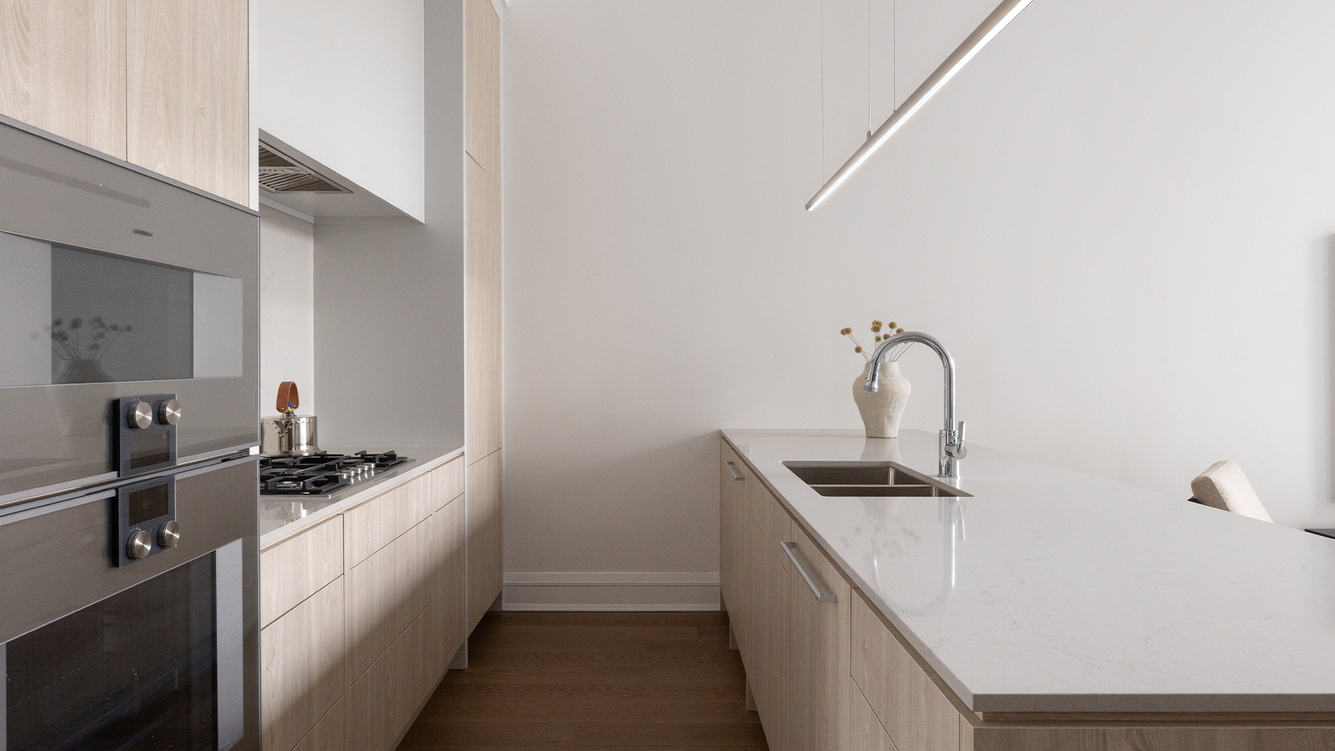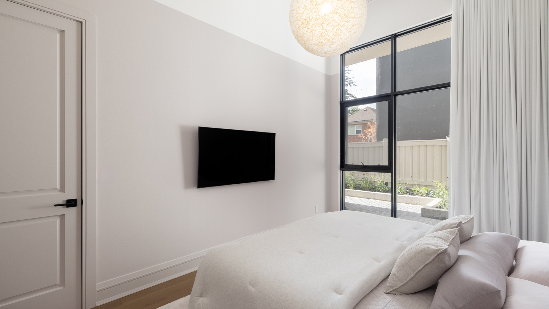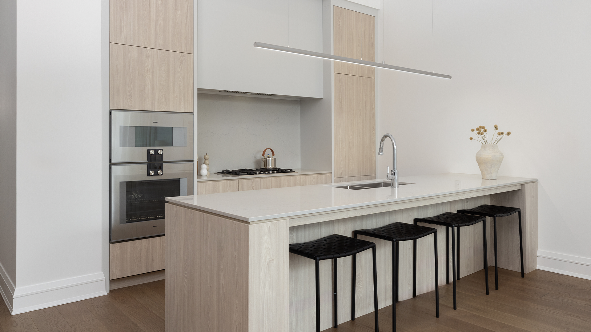 Upon stepping through the lobby doors, of The Rhodes, you’ll feel like this is a condo-building like no other. Opening the doors to the expansive one-bedroom plus den condo, only confirms your suspicions. It’s truly a one-of-a-kind gem in a boutique building nestled between midtown Toronto’s Forest Hill and Cedarvale neighbourhoods. Stepping outside you’ll find an outdoor retreat – like an entertaining patio with a natural gas BBQ and a flower garden. Inside you’ll find soaring 12-foot ceilings, recessed lighting, and 7-inch engineered wood floors set an elegant tone underfoot. The custom-designed kitchen features high-end appliances, quartz countertops, and an oversized island for five. The open-concept layout flows seamlessly into a bright living and dining area with bespoke built-ins, perfect for entertaining or working from home. Residents enjoy five-star amenities including a state-of-the-art fitness studio, pet spa, and rooftop terrace. This condo blends serene luxury with unmatched urban convenience.
