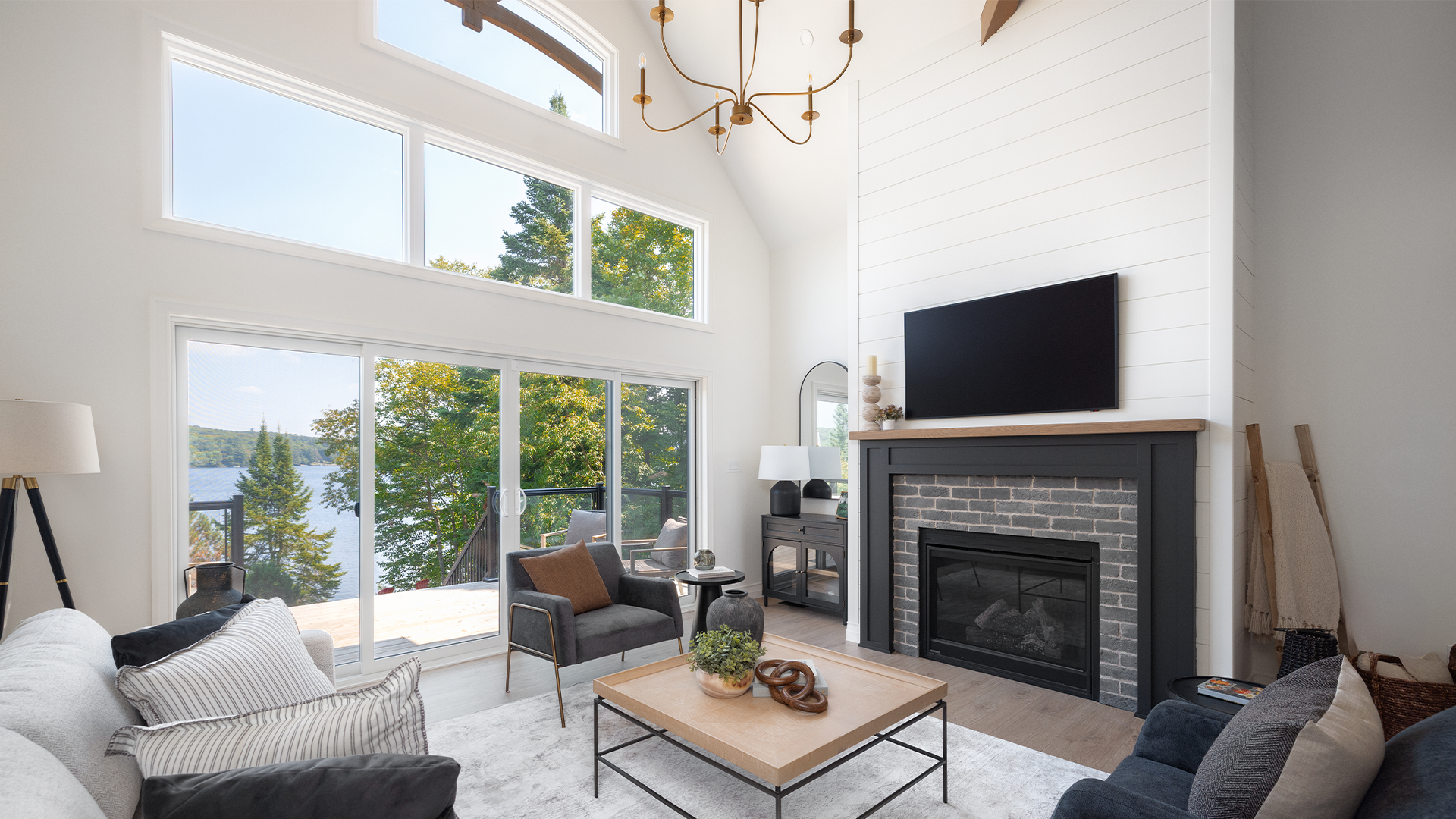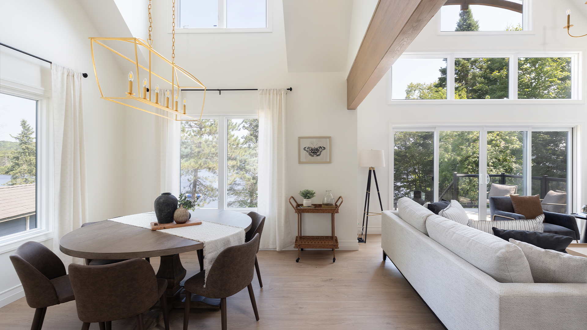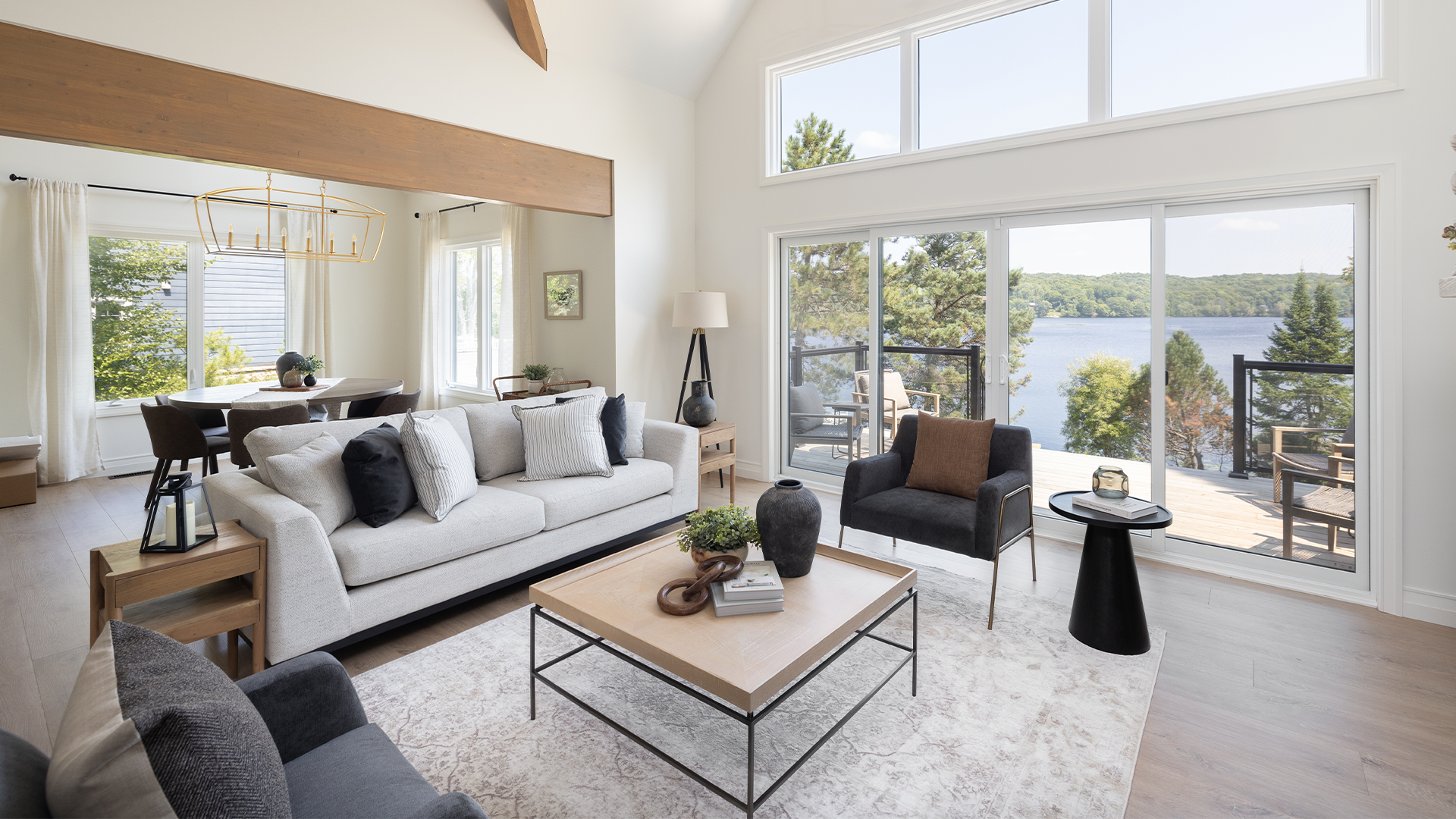 Escape to your timeless lakeside retreat on Lake Vernon in Huntsville, Muskoka. Nestled in nature, this open-concept cottage spans 2,727 SF of finished living space, featuring 4 bedrooms and 3 bathrooms. The design blends classic charm with modern comfort - from the crisp white exterior and striking black windows to the vaulted ceiling great room that opens to a large deck. This cottage is perfect for relaxation and gatherings.