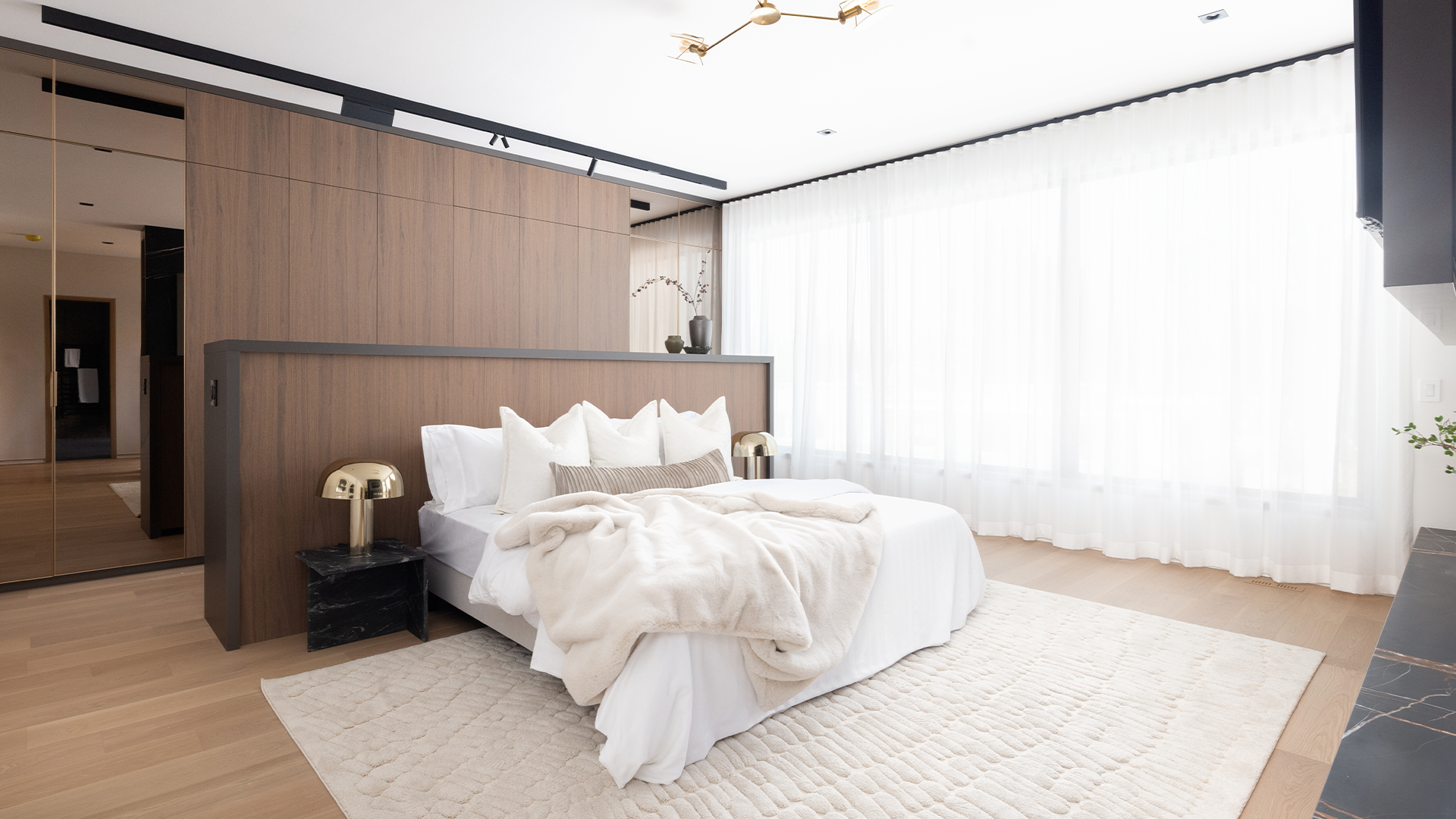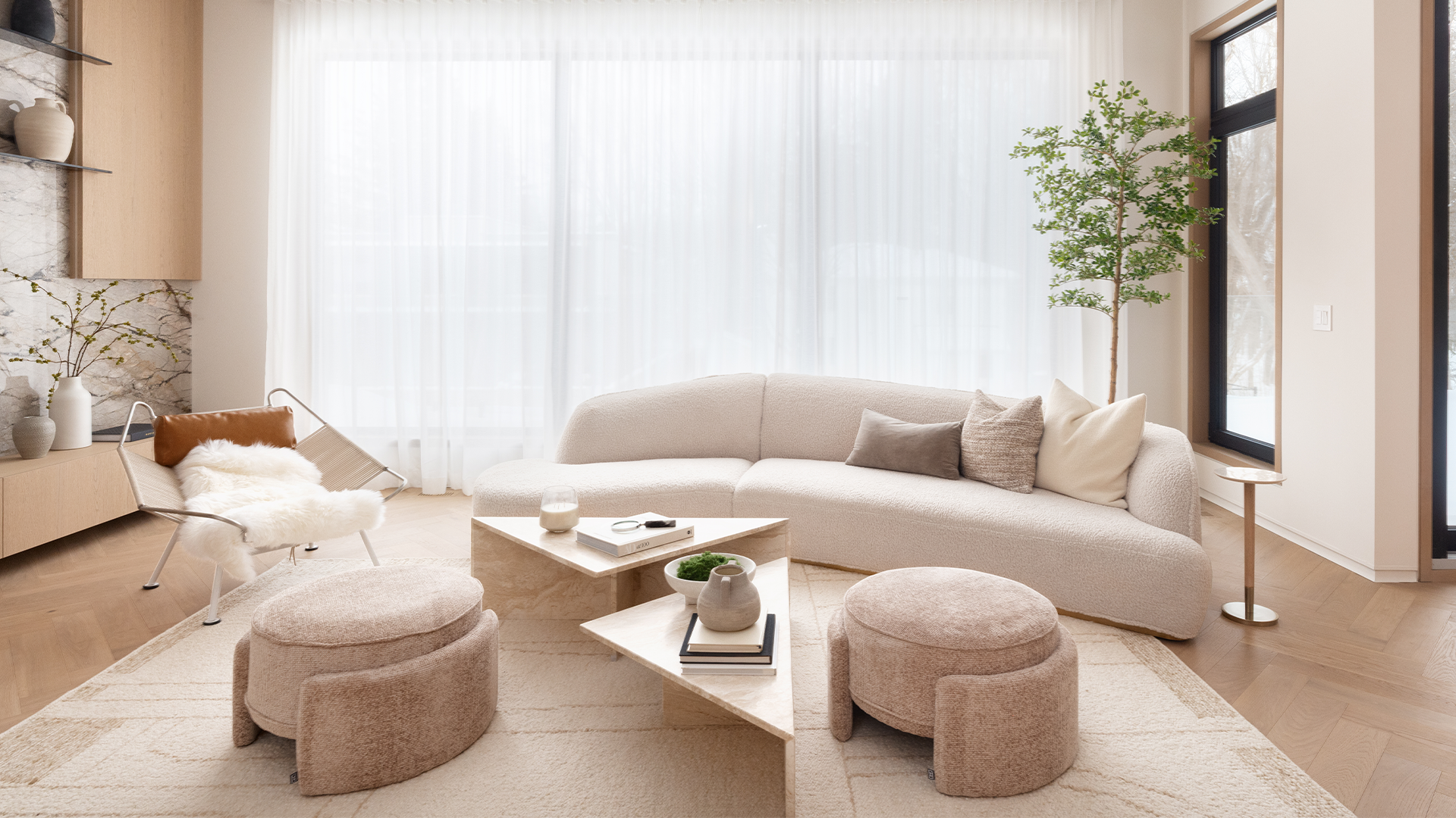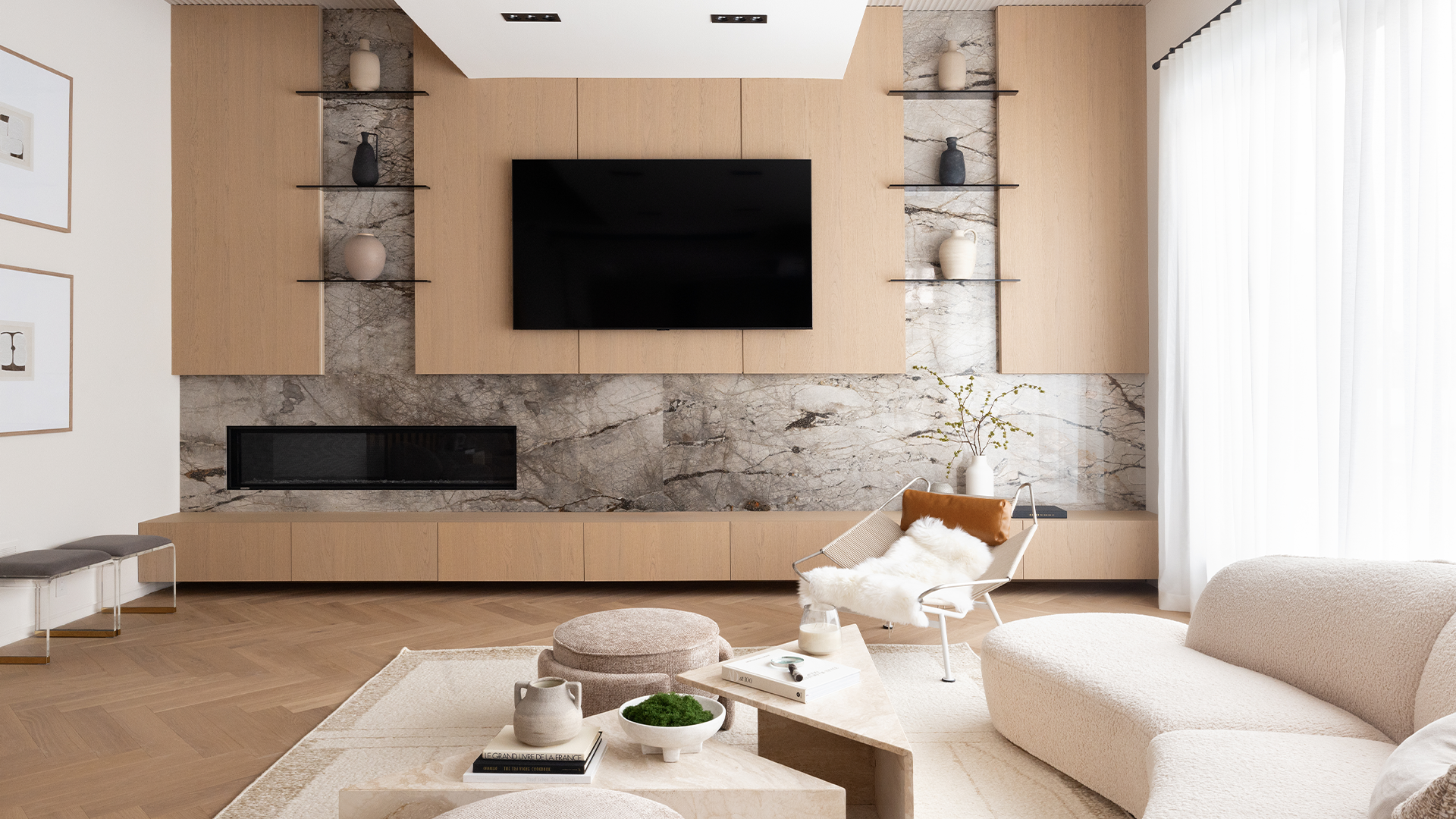 Designed with the sophistication of a private European resort, the outdoor living space offers a serene escape wrapped in modern minimalist luxury. The sleek pool, expansive stone terraces, and meticulously landscaped grounds create an atmosphere of quiet indulgence. Seamlessly connected to the home’s refined interiors, this exquisite retreat transforms everyday living into a truly elevated experience.