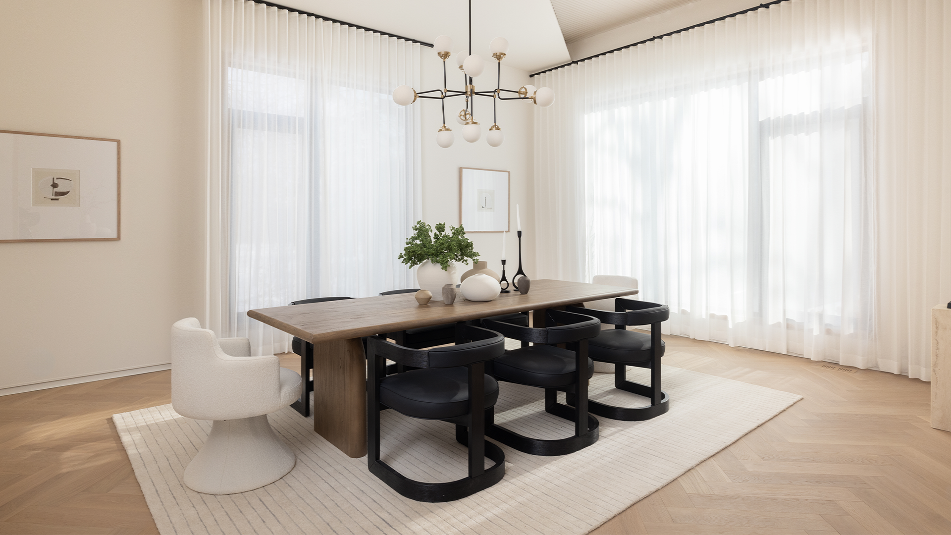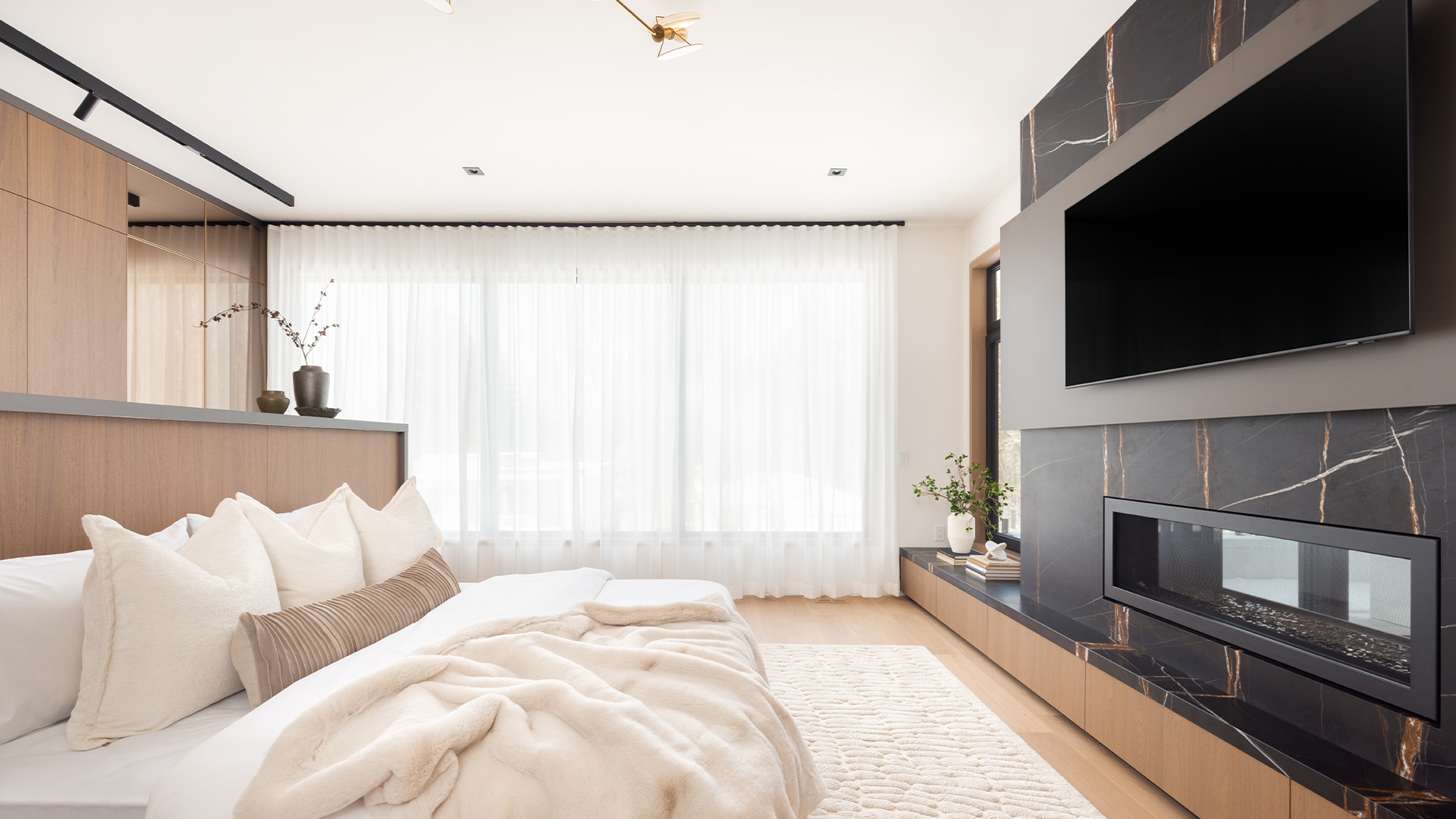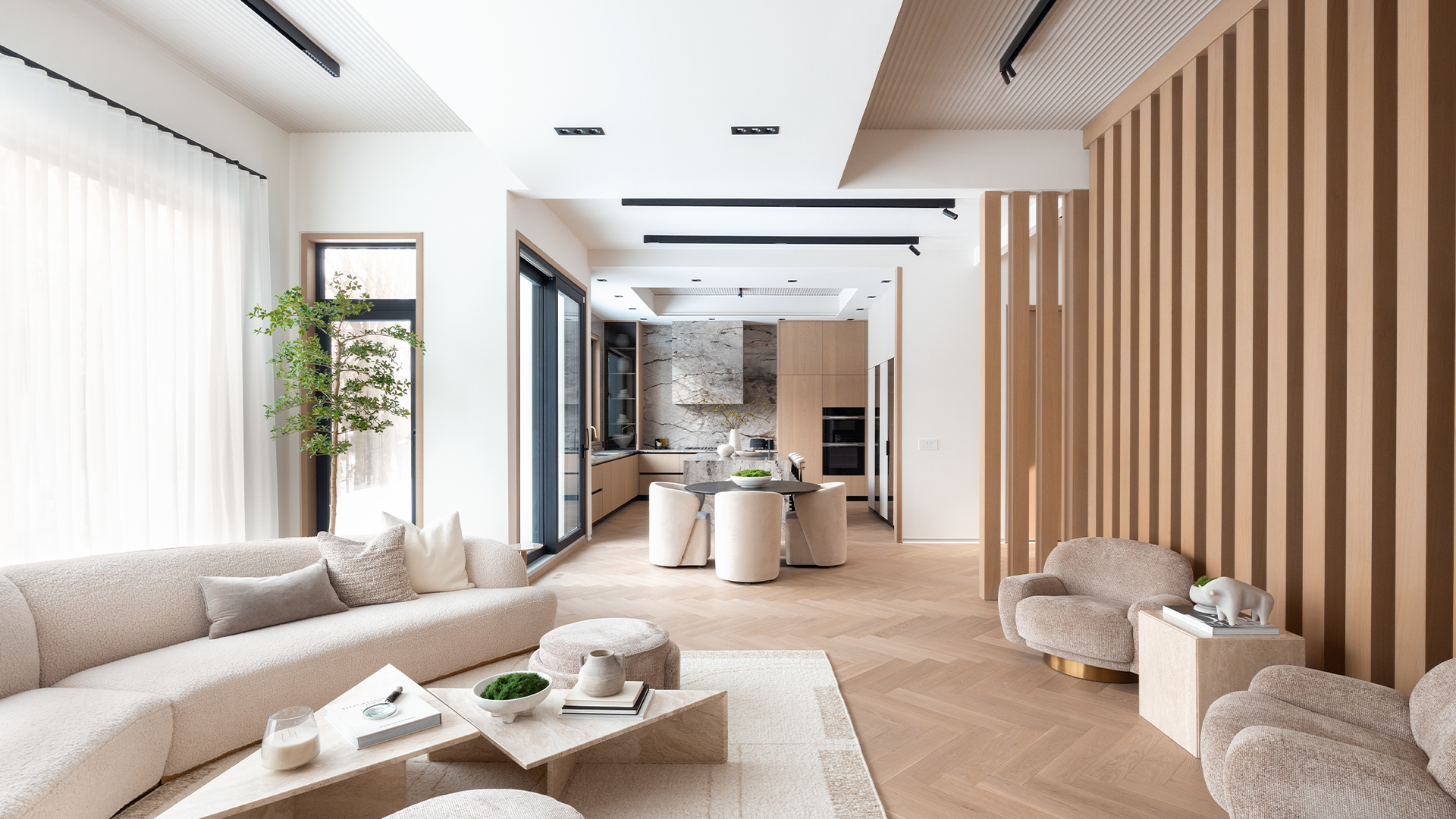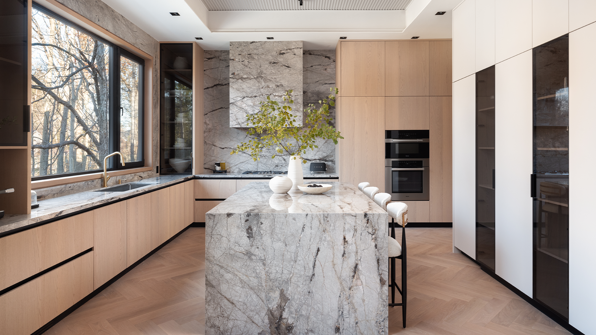 This magnificent estate blends European sophistication with modern minimalism, right in Toronto’s prestigious Thornhill neighbourhood. Set on a quiet cul-de-sac, this showhome offers over 7,500 SF of impeccably designed living space, and 5 bedrooms. Every detail reflects European-inspired sophistication. Expansive windows bathe the open-concept interior in natural light, showcasing herringbone floors, a chef’s kitchen with Gaggenau and Miele appliances, and refined architectural details throughout. The primary suite provides a spa-like retreat with terrazzo flooring, a freestanding tub, and double-sided fireplace. A private gym, theatre, and indoor/outdoor entertaining spaces with lap pool and cabana complete this masterpiece. With seemingly endless luxury features and finishes–like smart home technology, an elevator, and a three-car garage, this showhome defines modern elegance, where craftsmanship and contemporary design unite in perfect harmony.